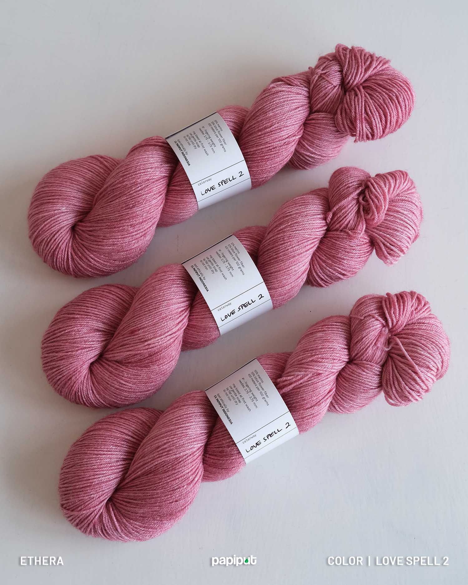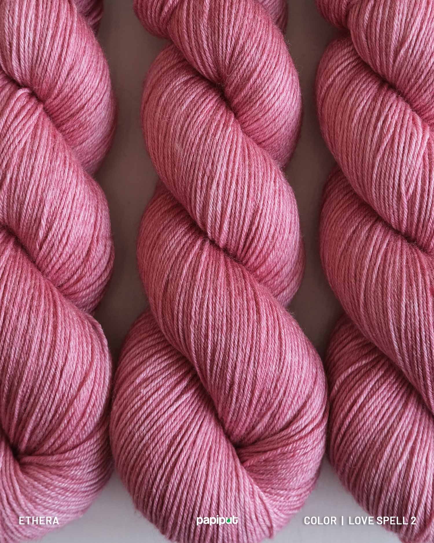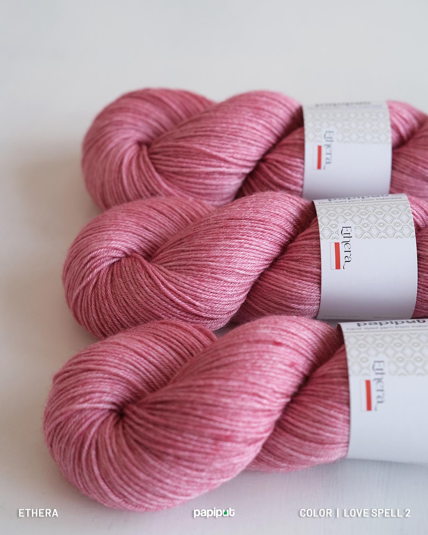 Benang ini sangat cocok untuk berbagai project iklim tropis, misalnya baju dan scarf/shawl. Gabungan serat merino dan bunga lotus menjadikan Ethera terasa lembut, lentur, halus, ringan, dan nyaman untuk dipakai bersentuhan langsung dengan kulit. Enak dirajut, stitch definition rapi, dan bagus untuk motif knitting pattern stockinette, lace, cable, colorwork, dan brioche.