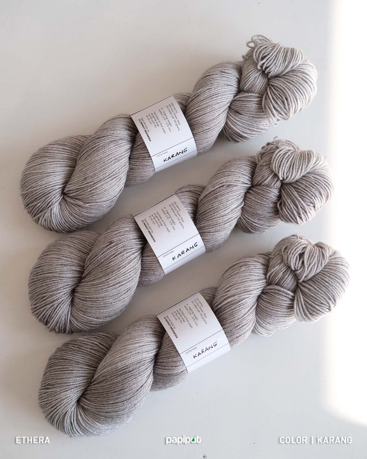 Benang paling favorit pelanggan Papiput. Terbuat dari serat superwash merino wool dan serat bunga lotus.