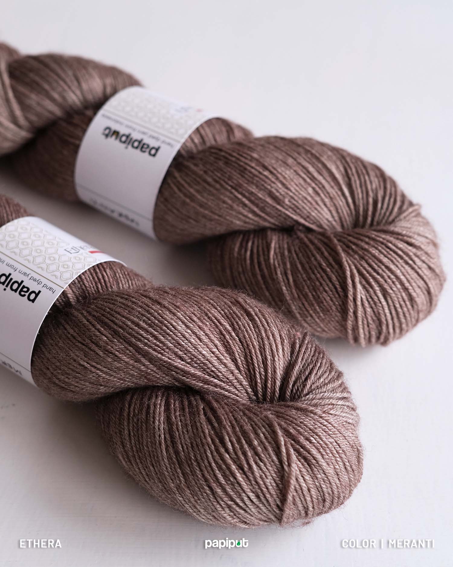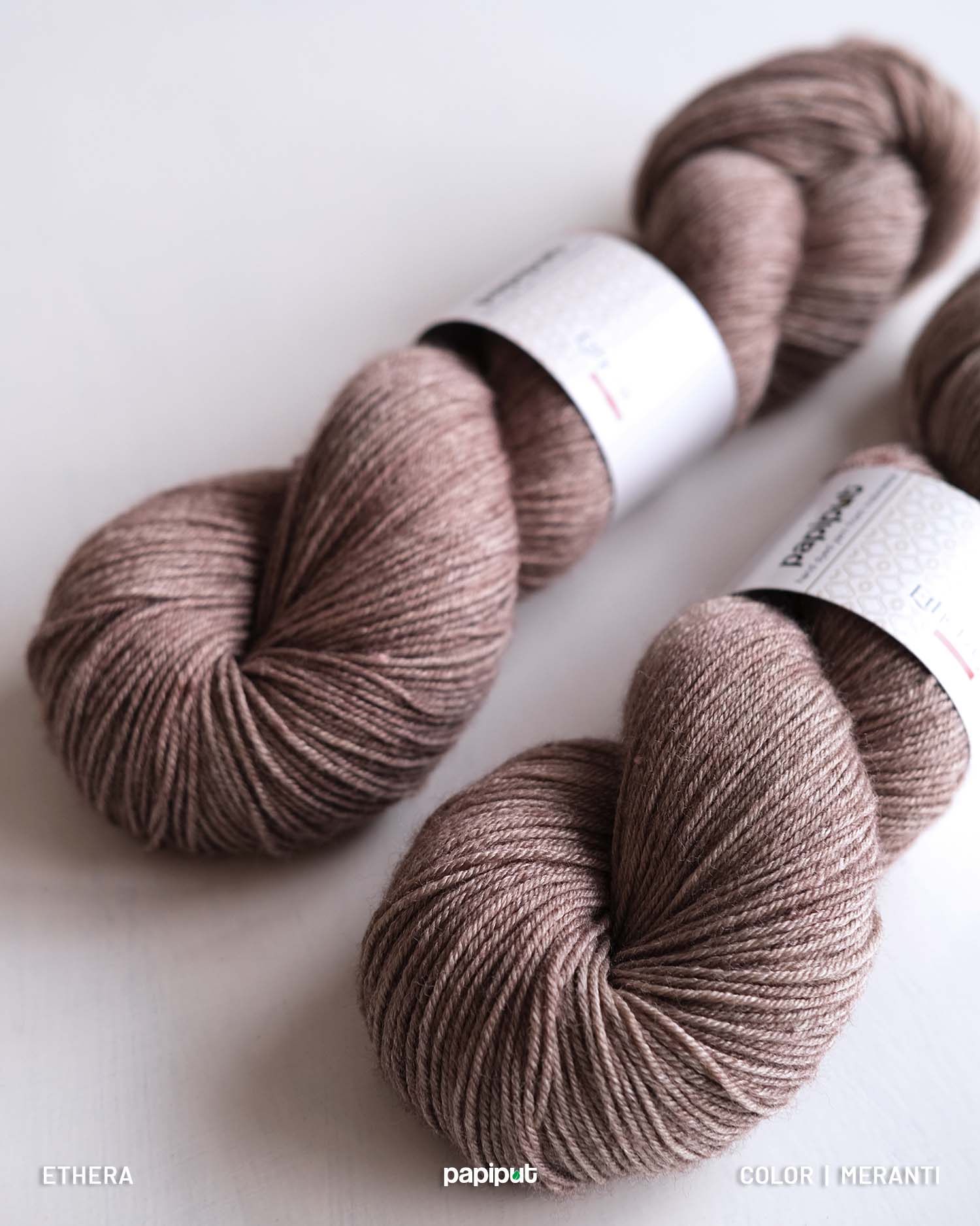Benang ini sangat cocok untuk berbagai project iklim tropis, misalnya baju dan scarf/shawl. Gabungan serat merino dan bunga lotus menjadikan Ethera terasa lembut, lentur, halus, ringan, dan nyaman untuk dipakai bersentuhan langsung dengan kulit. Enak dirajut, stitch definition rapi, dan bagus untuk motif knitting pattern stockinette, lace, cable, colorwork, dan brioche.