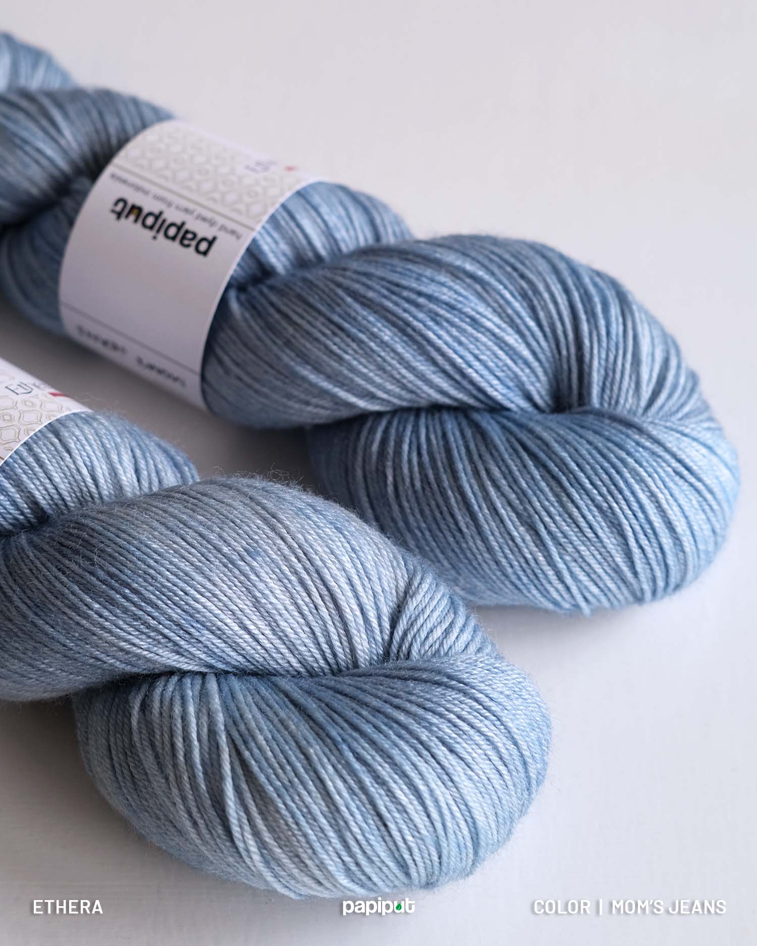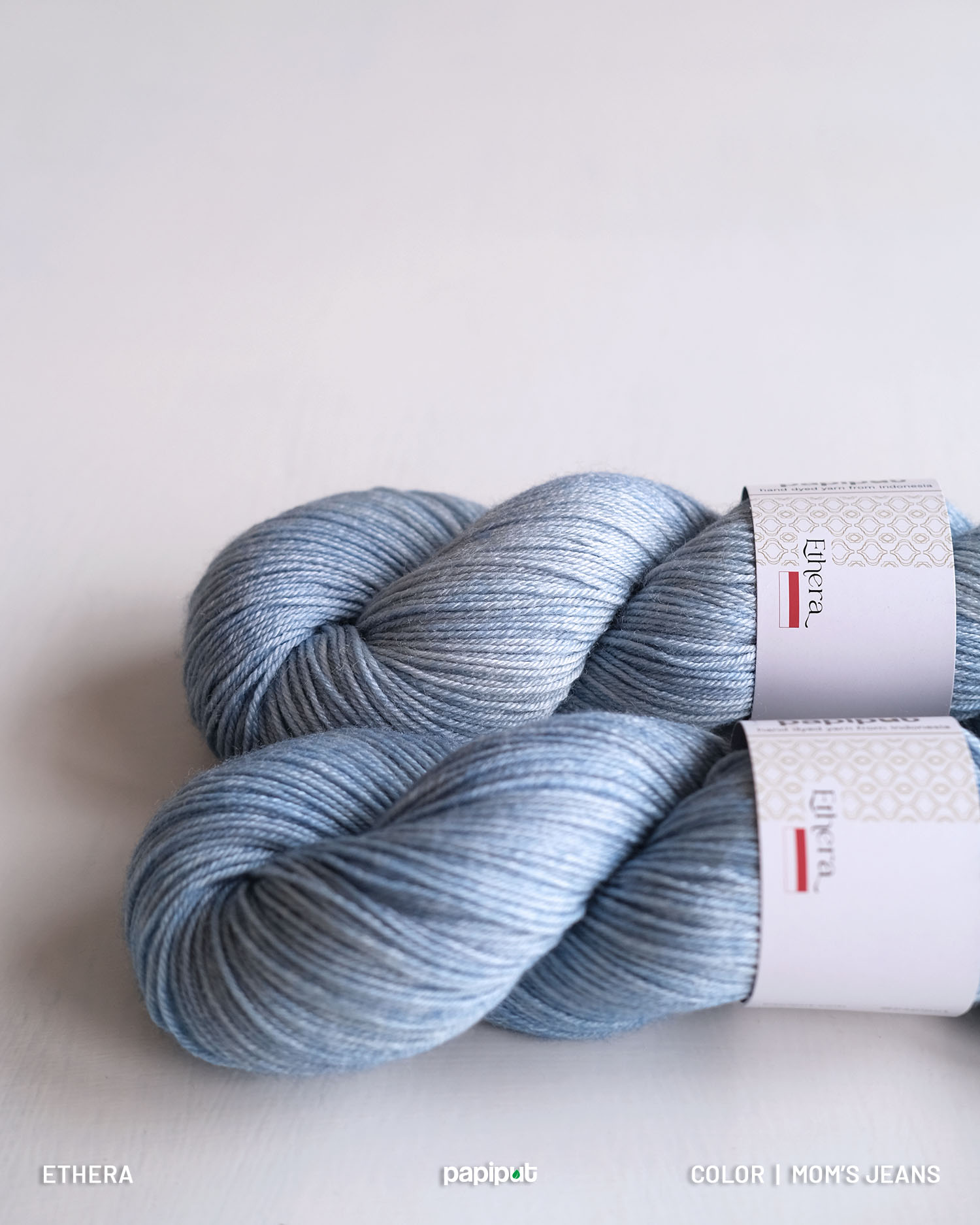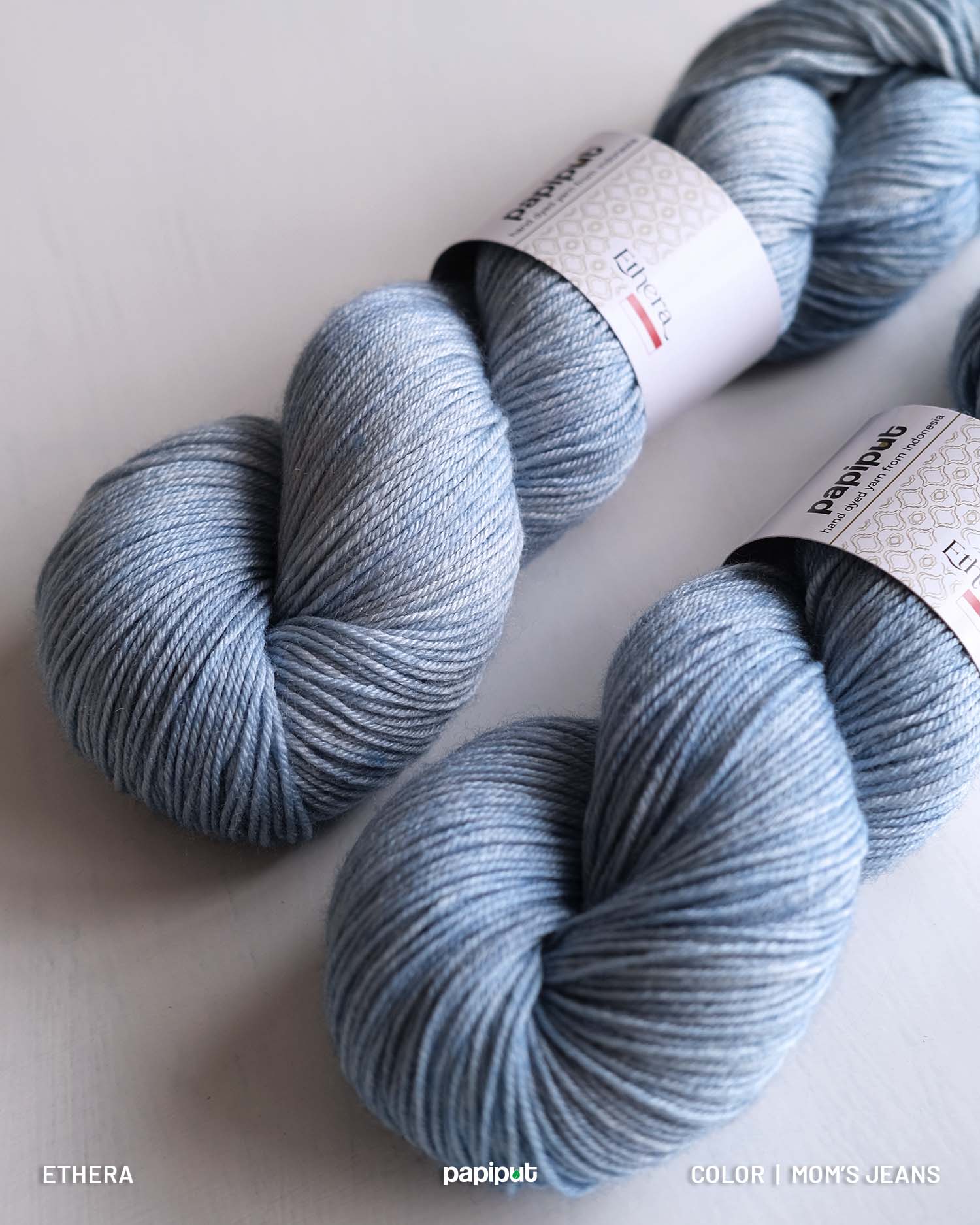 Benang ini sangat cocok untuk berbagai project iklim tropis, misalnya baju dan scarf/shawl. Gabungan serat merino dan bunga lotus menjadikan Ethera terasa lembut, lentur, halus, ringan, dan nyaman untuk dipakai bersentuhan langsung dengan kulit. Enak dirajut, stitch definition rapi, dan bagus untuk motif knitting pattern stockinette, lace, cable, colorwork, dan brioche.