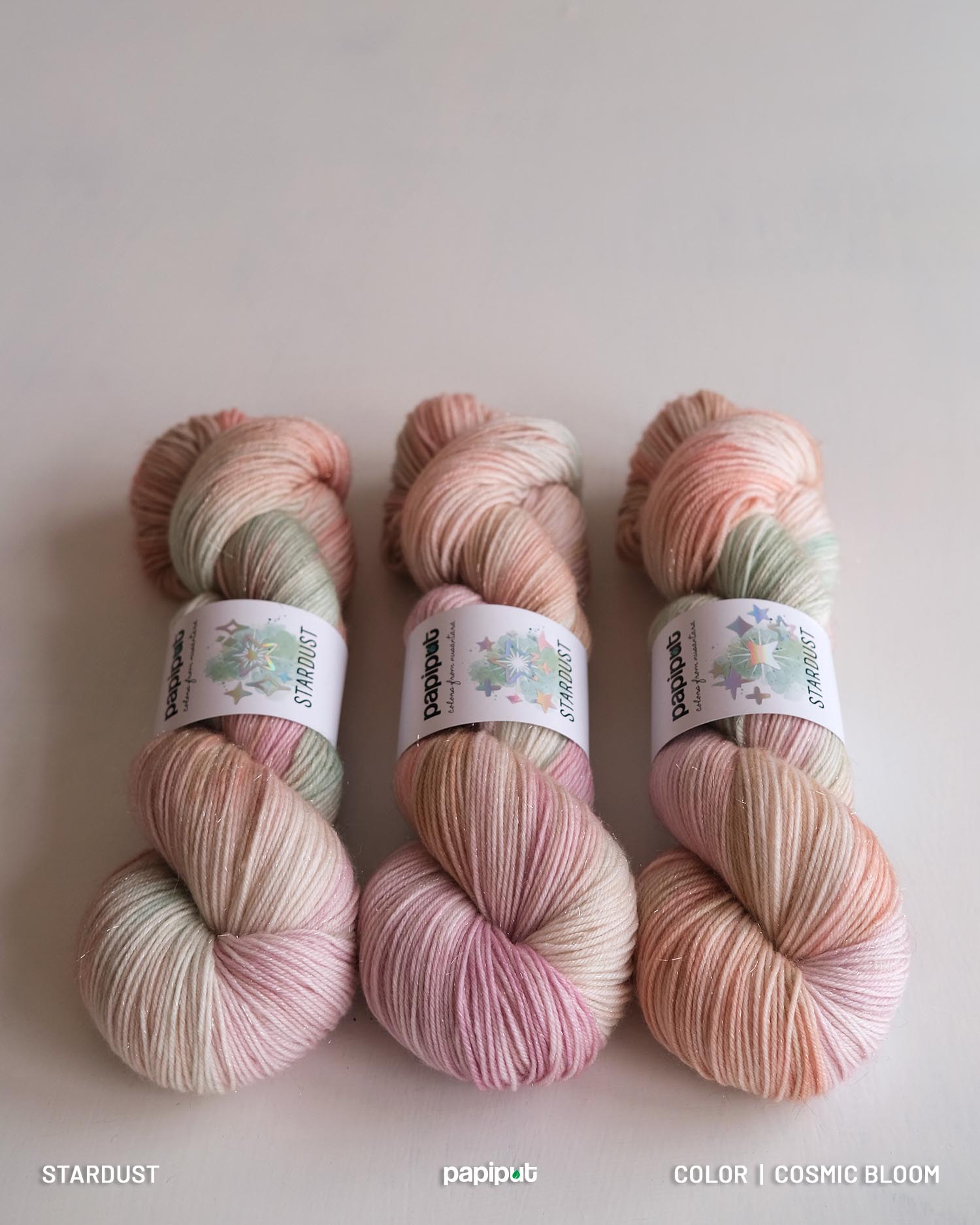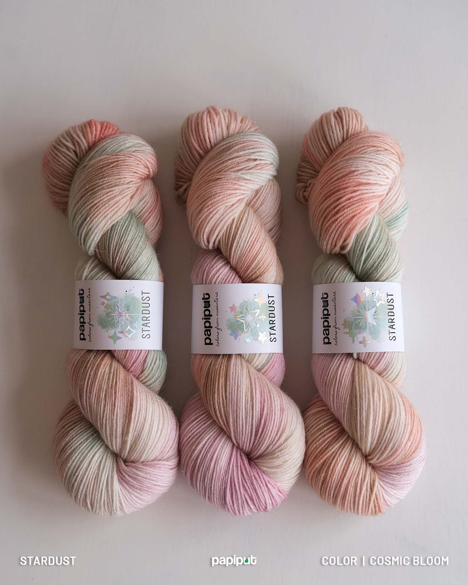 Crafted from 75% superwash merino, 15% nylon, and 10% premium silver stellina, Stardust offers the perfect balance of softness, strength, and shimmer. The silver stellina—made from high-quality synthetic fiber—adds a subtle yet striking sparkle without sacrificing comfort. Light, airy, and soft against the skin, it’s ideal for shawls, socks, tops, or any accessory that deserves a touch of magic.