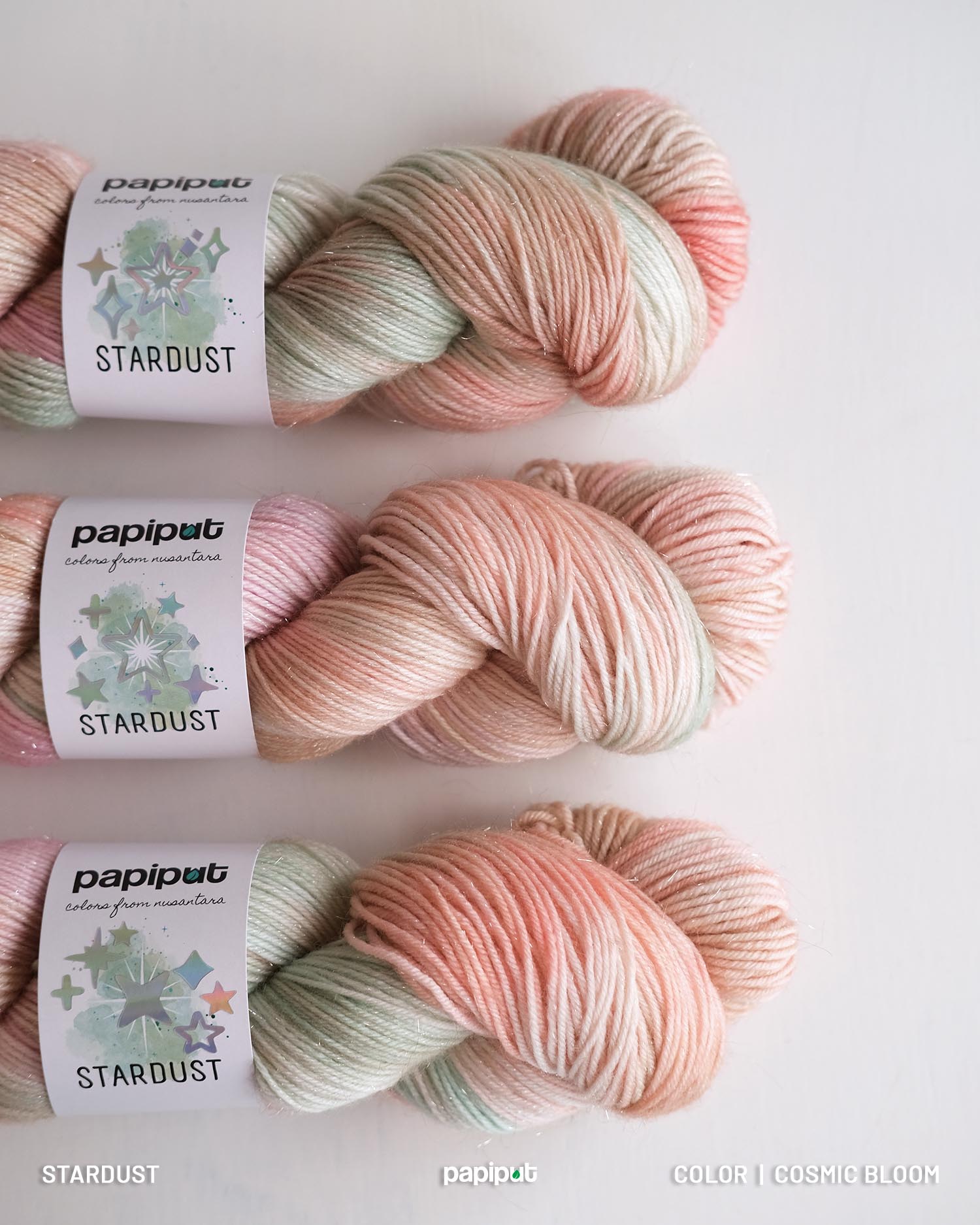 Walaupun Stardust terbuat dari superwash merino, kami tetap menyarankan untuk mencuci hasil rajutan menggunakan tangan daripada mesin. Gunakan sabun khusus benang wol ataupun sampo yang lembut saat mencuci.