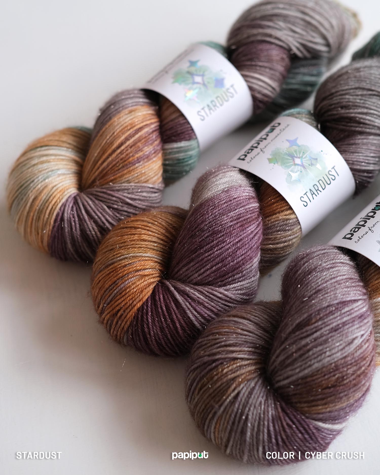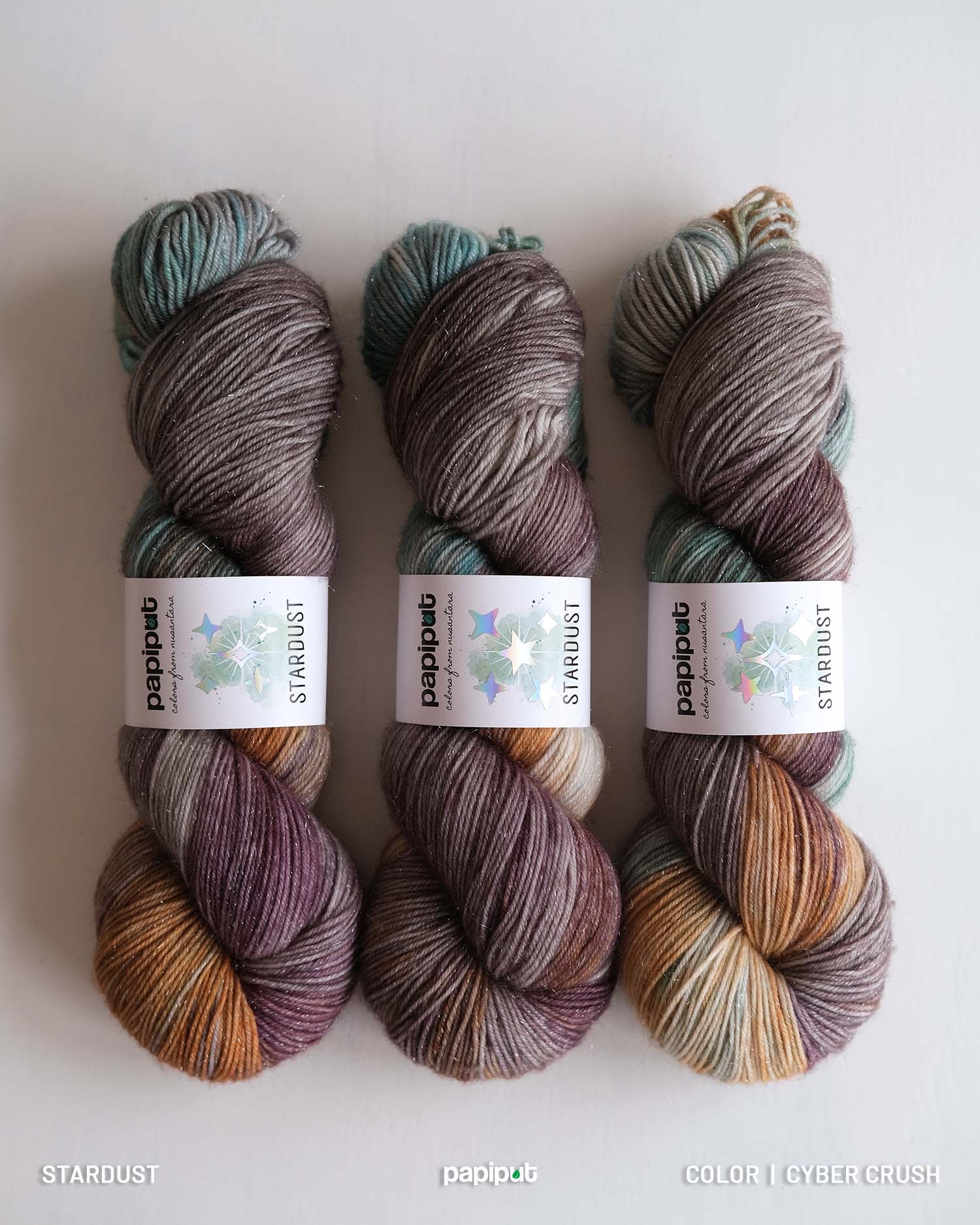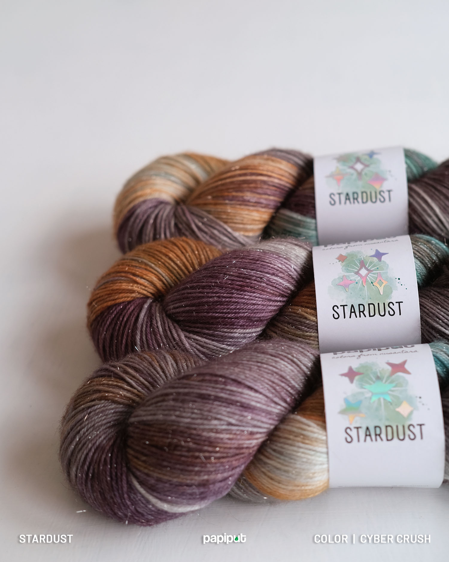 Crafted from 75% superwash merino, 15% nylon, and 10% premium silver stellina, Stardust offers the perfect balance of softness, strength, and shimmer. The silver stellina—made from high-quality synthetic fiber—adds a subtle yet striking sparkle without sacrificing comfort. Light, airy, and soft against the skin, it’s ideal for shawls, socks, tops, or any accessory that deserves a touch of magic.