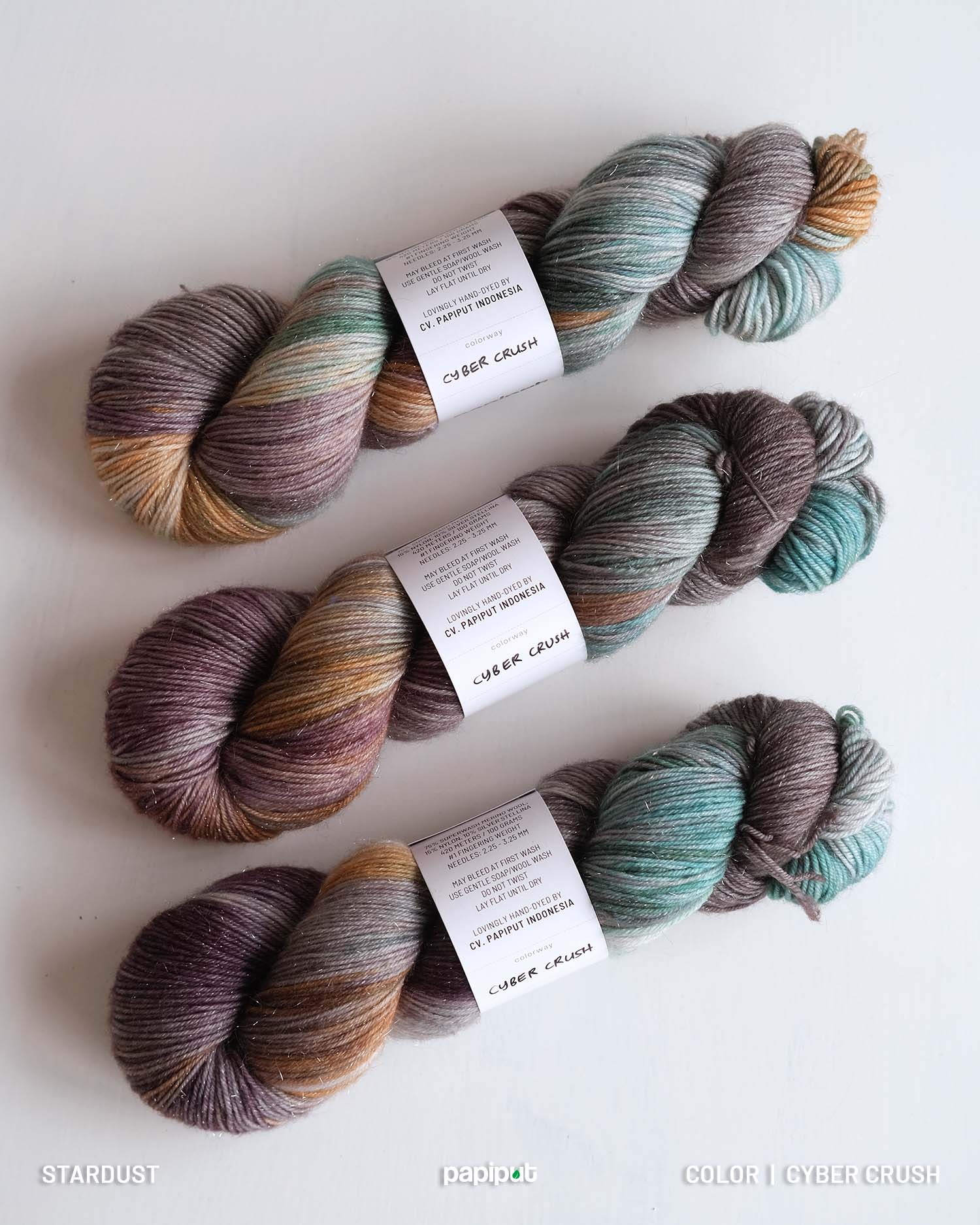 Walaupun Stardust terbuat dari superwash merino, kami tetap menyarankan untuk mencuci hasil rajutan menggunakan tangan daripada mesin. Gunakan sabun khusus benang wol ataupun sampo yang lembut saat mencuci.