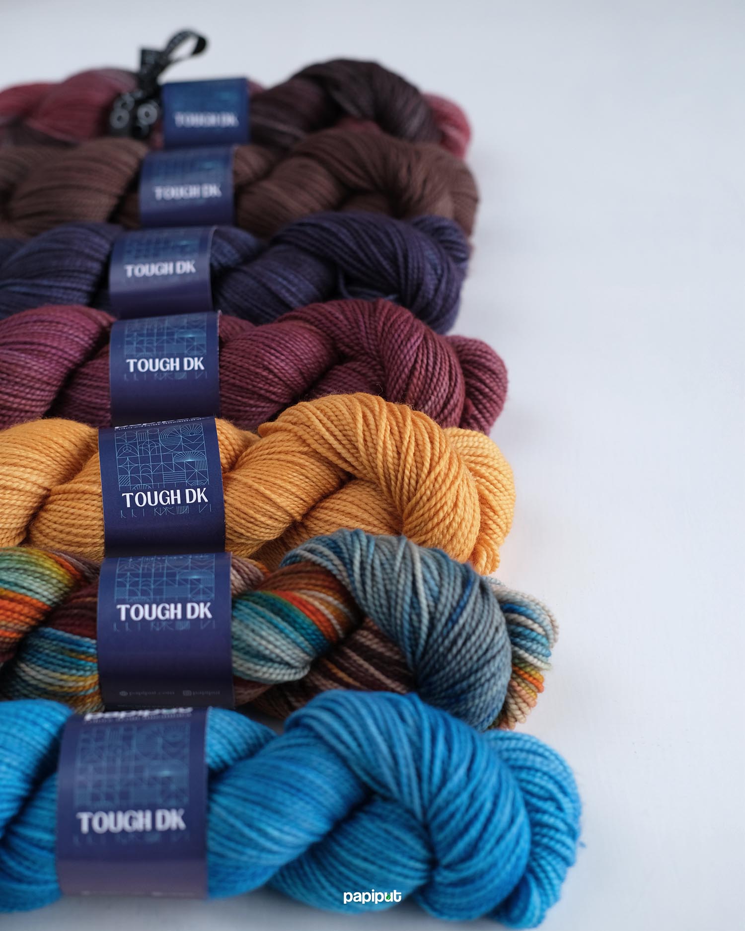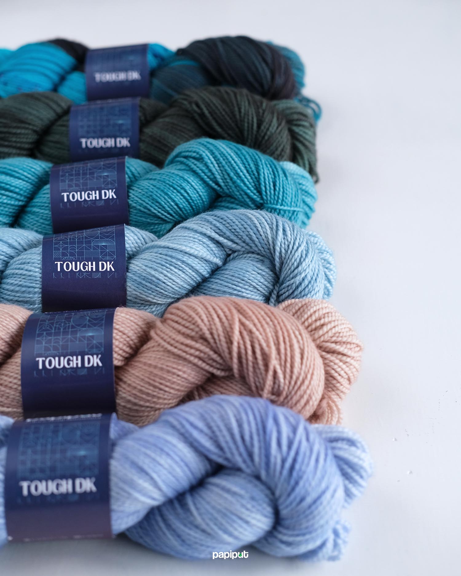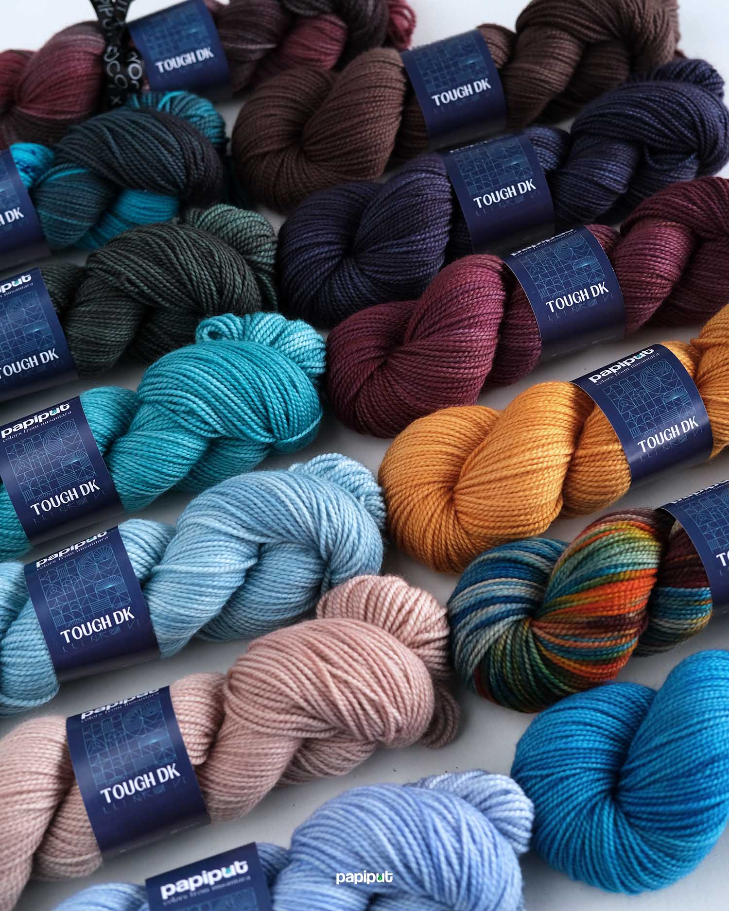 Tough DK adalah benang Papiput yang paling kenyal dan lentur. Lembut dan nyaman untuk berbagai proyek yang bersentuhan langsung dengan kulit, serta menghasilkan stitch definition yang rapi.